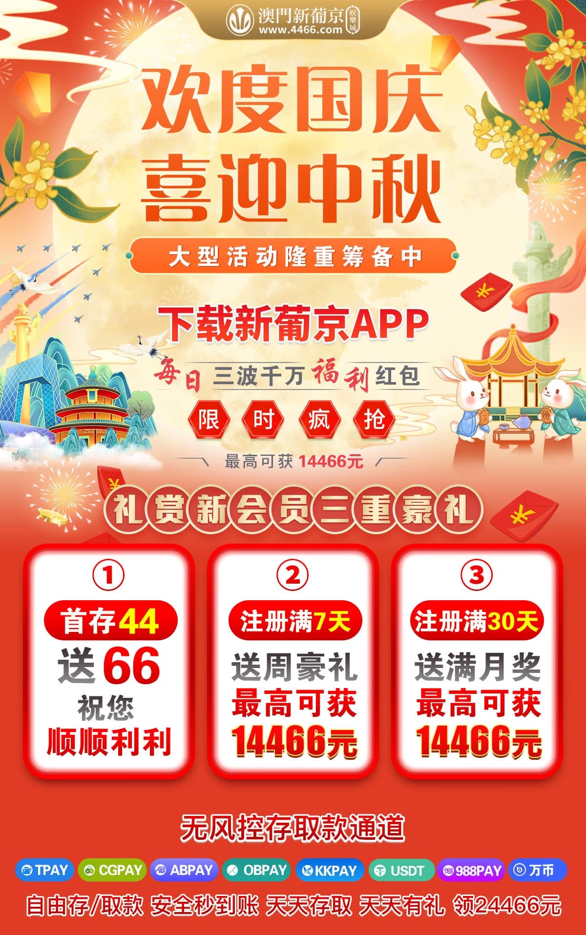 【澳门新葡京】每日三波千万福利红包免费领取,最高可获14466元
