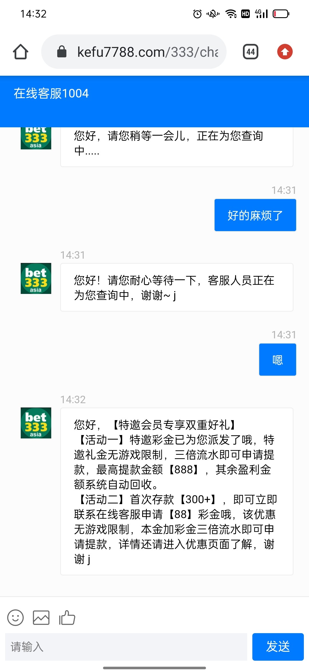 特邀送58,最低300出,不限制游戏,3倍流水去找客服去碰碰,你就说你是电话特邀的 ,申请一下彩金 先去绑一下卡 ,他会让你提供电话截图,你就去找一张境外的电话就行 ,我是没有接到电话 ,我碰到了 ,本人亲测